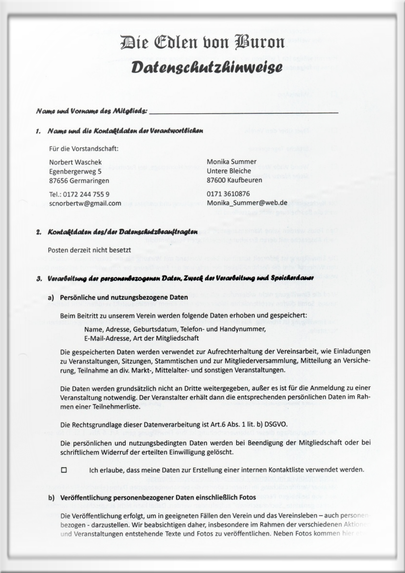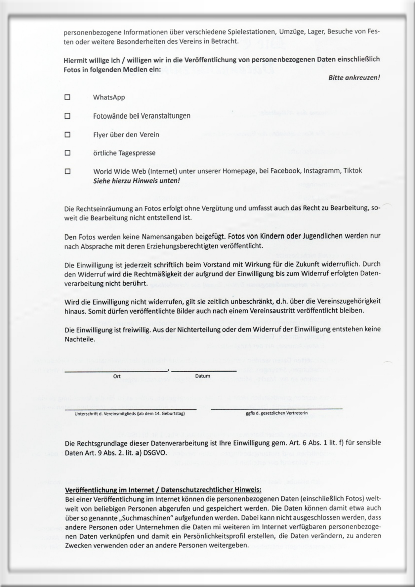 - a) Einwilligung (z. B. Veröffentlichung von Fotos, Newsletter).